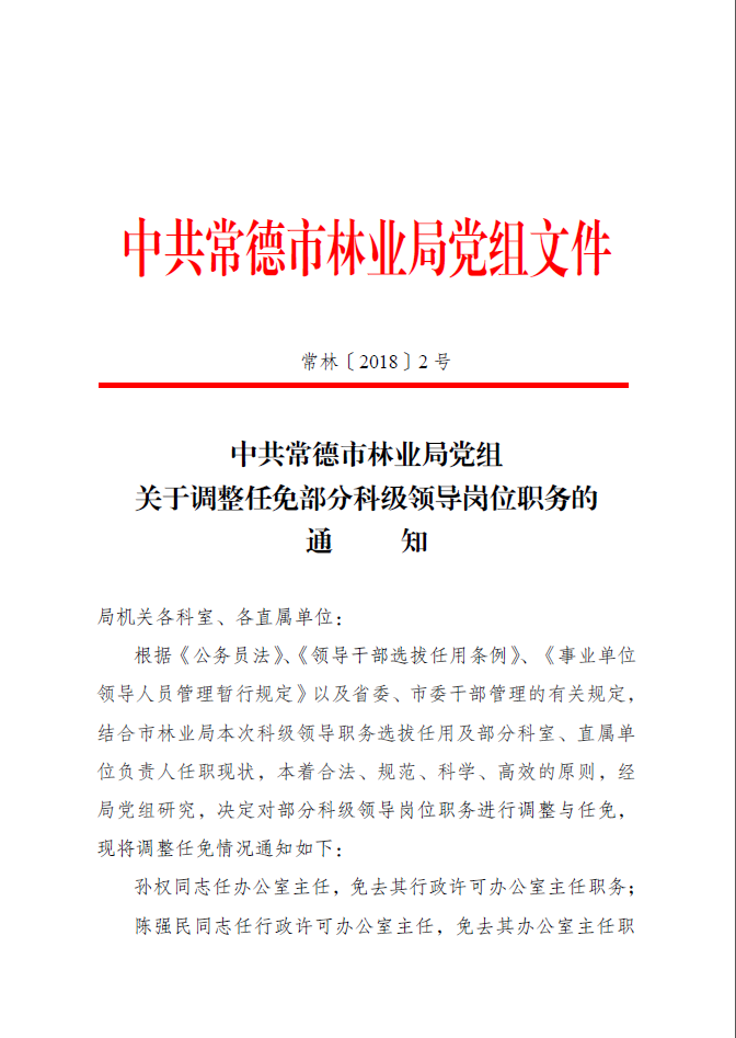 中共121winsb.com党组关于调整任免部分科级领导岗位职务的通知